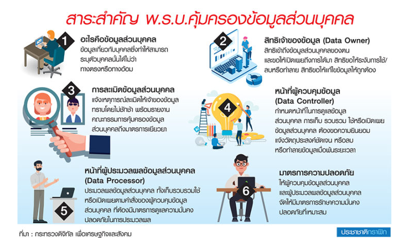 อ้างอิง: ศูนย์ความรู้เกี่ยวกับข้อมูลส่วนบุคคล โดย สพธอ. และ กระทรวงดิจิทัลเพื่อเศรษฐกิจและสังคม